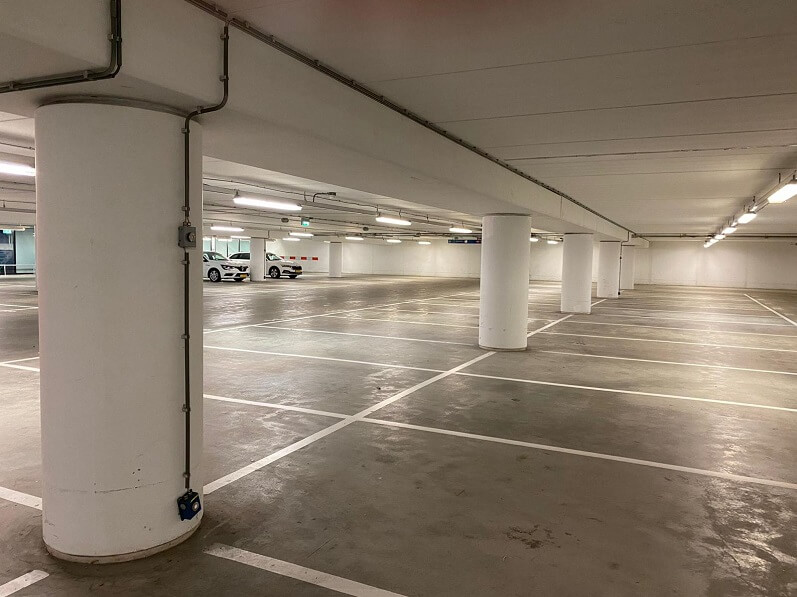 De opdracht: meer overzicht en herkenbaarheid creëren voor bezoekers. Het resultaat? Een frisse, heldere ruimte waarin gebruikers direct zien waar ze hun auto hebben geparkeerd.